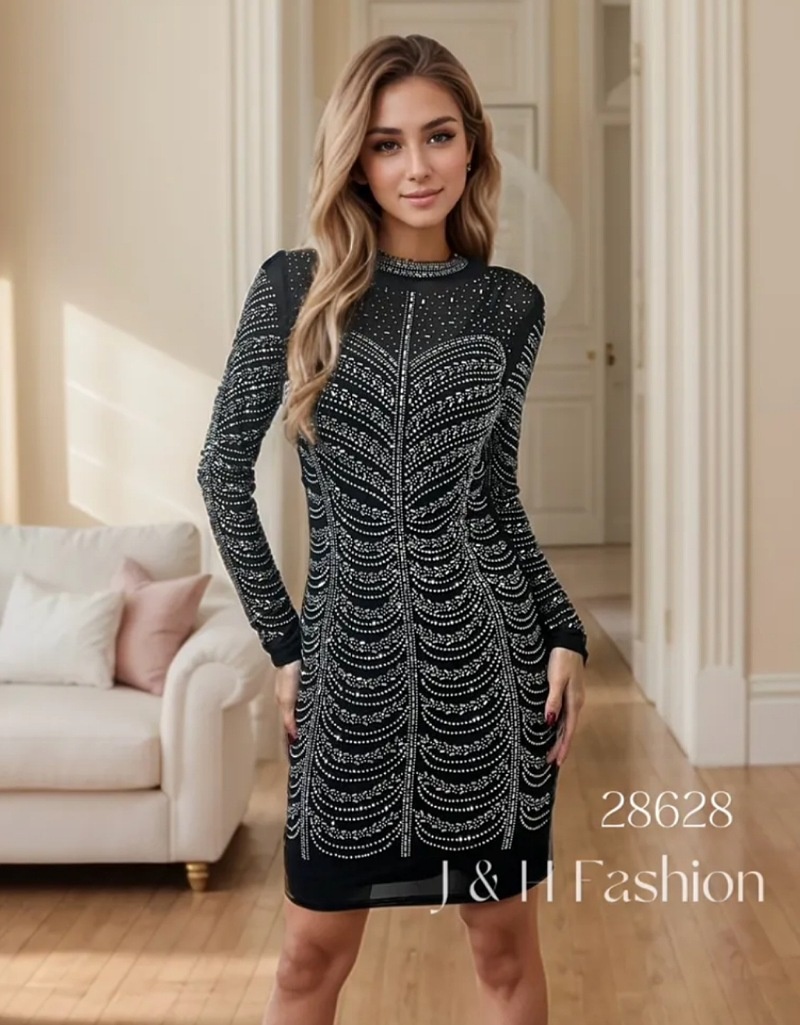 Long sleeve silver beaded cocktail dress