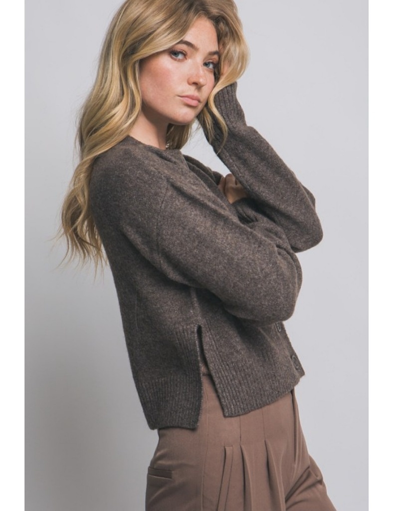 Warm and cozy cardigan with side slits.
