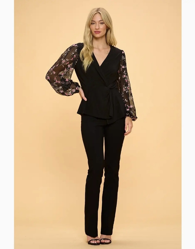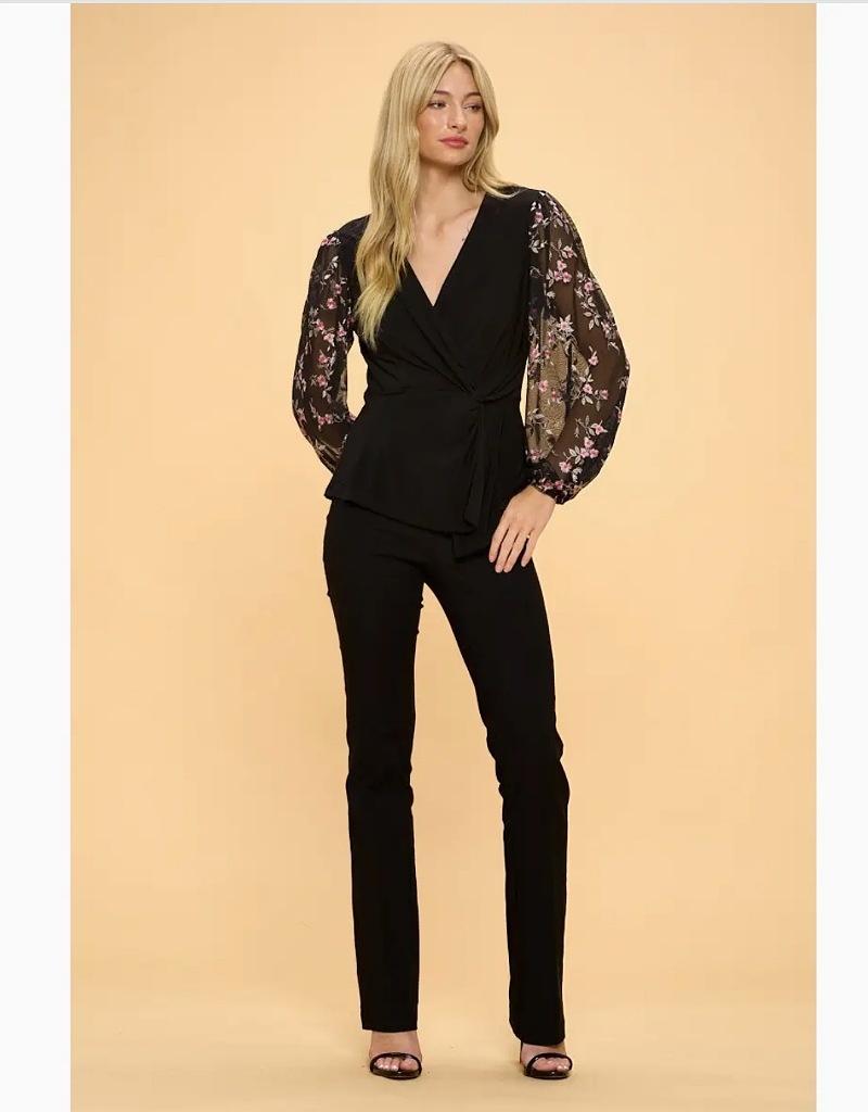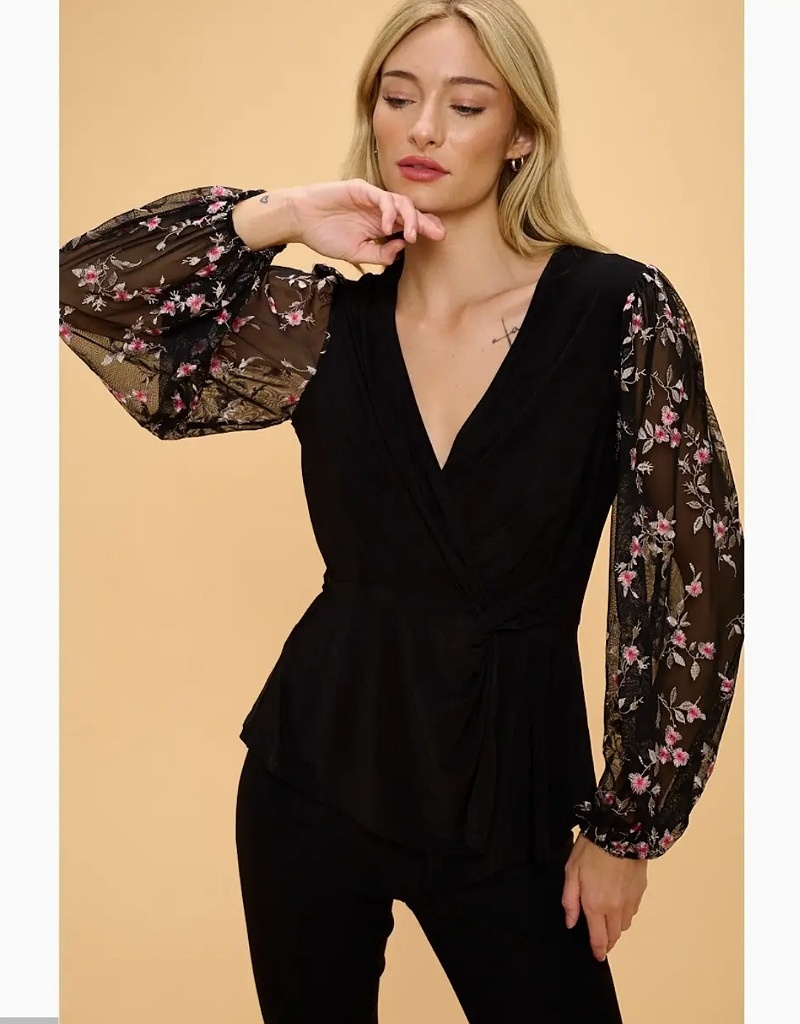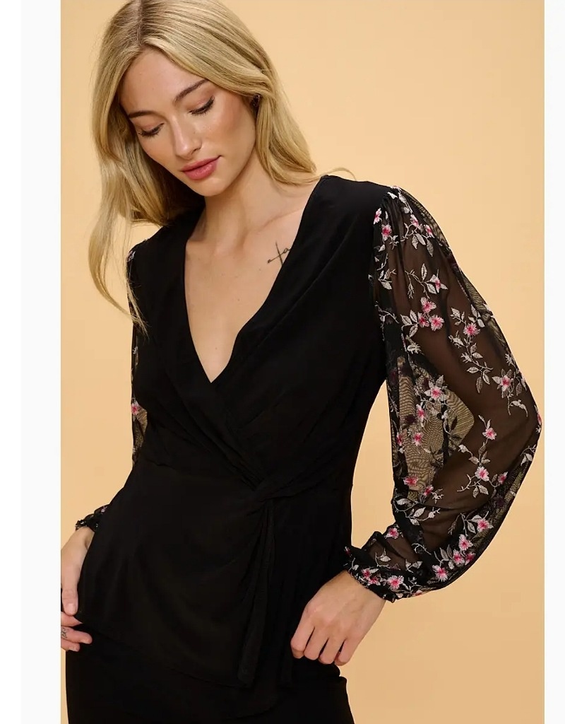 Cross over blouse with embroidered sleeves