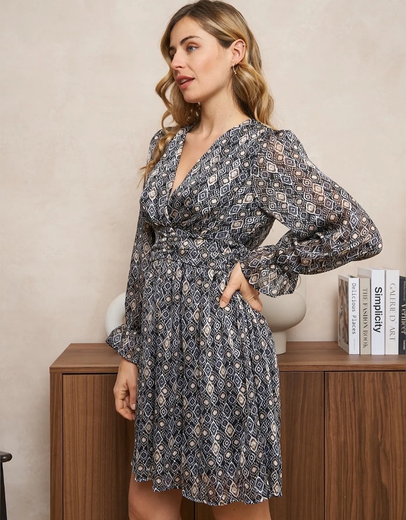V neck geometric printed dress